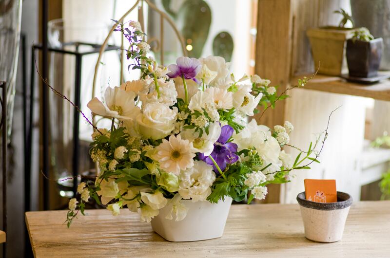 使用花材: 生花(アネモネ、ガーベラ、バラ、その他季節の花)※季節により花材が異なる場合があります。