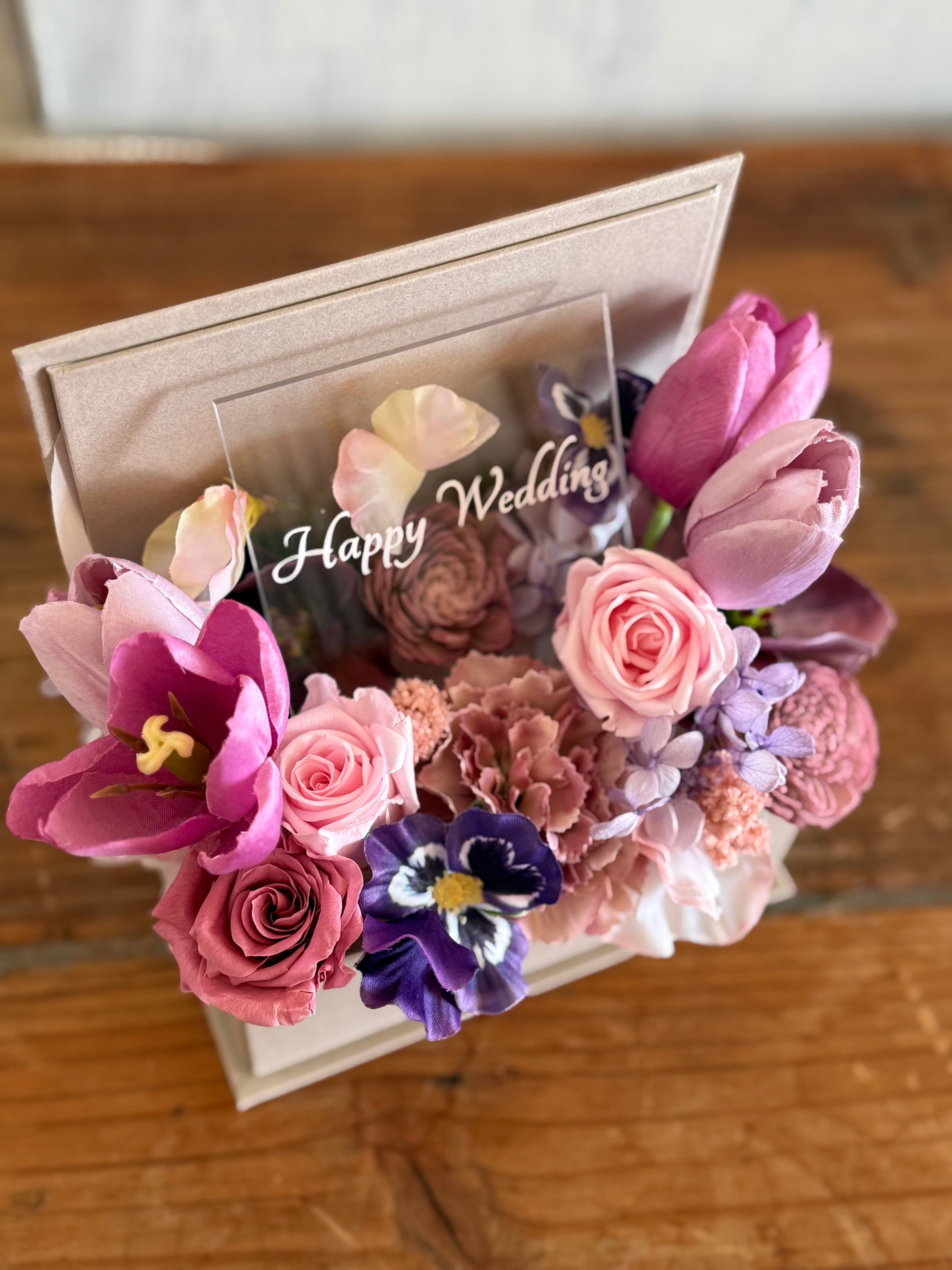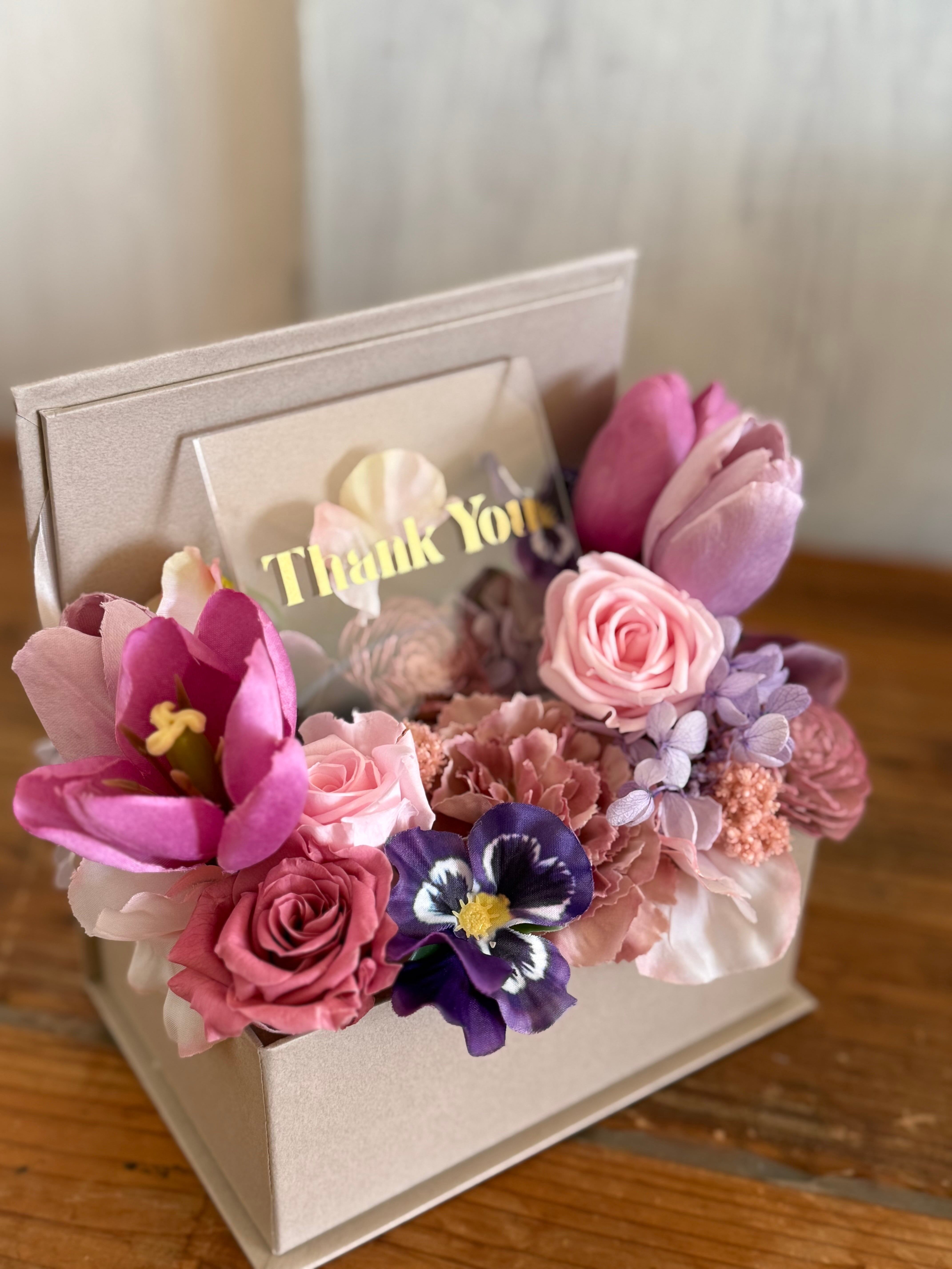 結婚祝い 退職祝い 母の日フラワーギフト 開店祝い【名入れ】 プリザーブドフラワーアレンジ ボックスアレンジ〈シックピンク〉