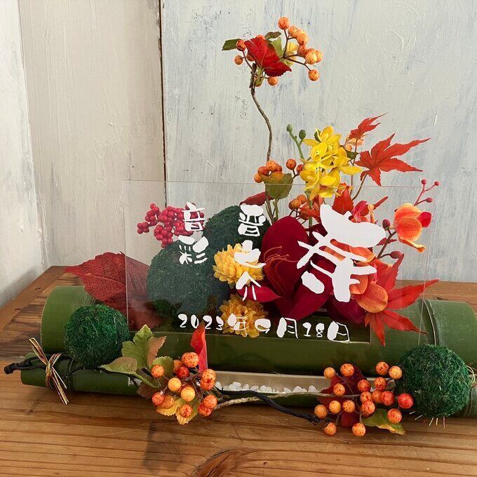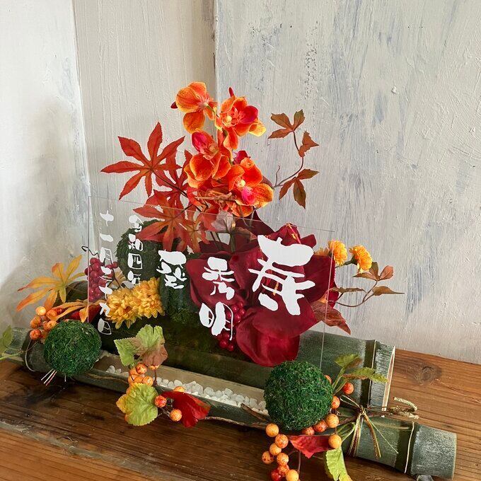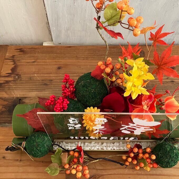 和風ウェルカムボード・開店祝い・和婚ウェルカムボード・結婚祝い【名入れ】竹アレンジ 和風 紅葉〈秋〉