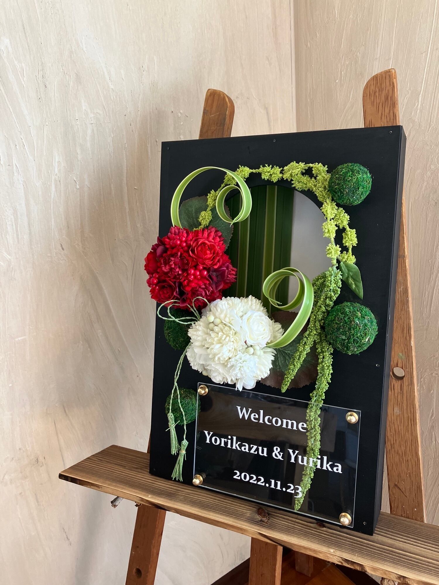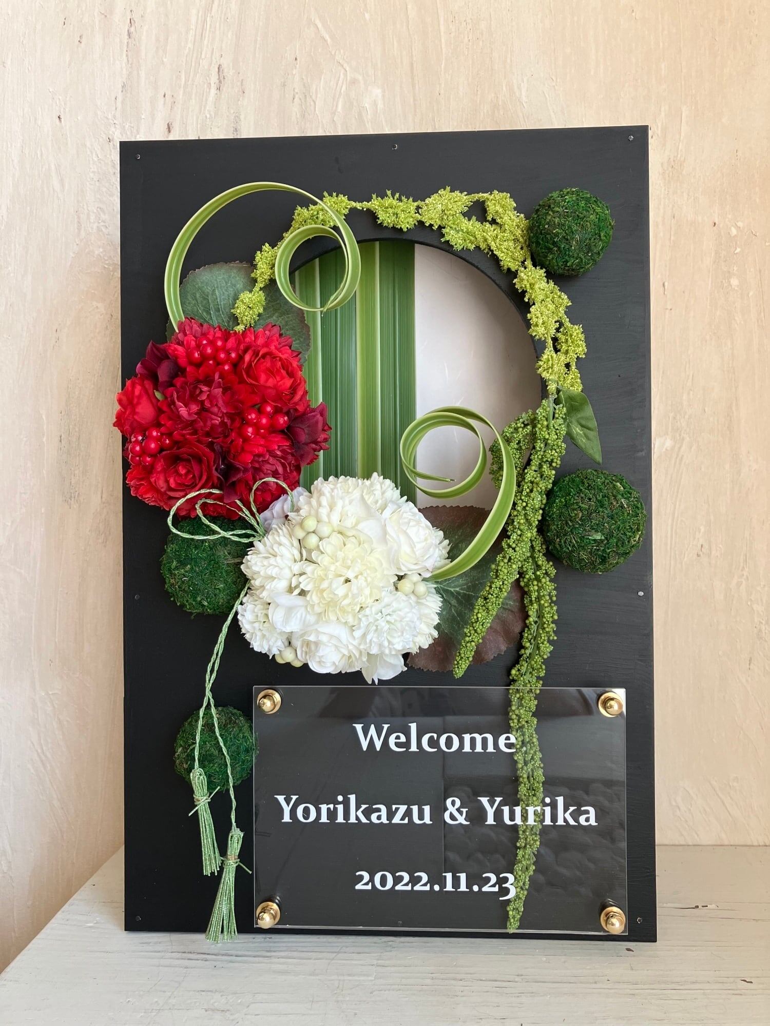 紅白のおめでたい名入れウェルカムボード
